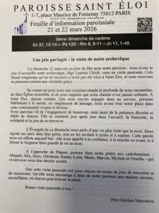 FIP (Feuille d'information paroissiale) FIP 2026 03 22 par Sabine de Limerville|Publié 20 mars 2026 FIP 2026 03 22